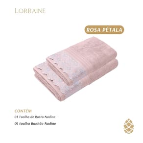 Toalha felpuda com aplicação de Renda Bordada. A delicadeza da renda aplicada na toalha confere ao produto um visual requintado.O brilho e maciez incomparável do Algodão Egípcio traz um diferencial para o seu banho. São fibras longas e resistentes com excelente absorção. Um verdadeiro banho de requinte e conforto.Contém: 01 Toalha de Banho Gigante Nadine 81cm x 150cm 01 Toalha de Rosto Nadine 50cm x 80cmRenda: NadineComposição: 100% algodão Egípcio Gramatura: 500 g/m2Marca: Buettner