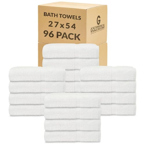Este pacote de toalhas de banho de qualidade superior inclui 96 toalhas premium, confeccionadas em 100% algodão turco Ringspun com borda Dobby, cada uma medindo 68 x 137 cm. Macias e ultramacias, essas toalhas são perfeitas para uma variedade de usos, desde banheiros e lavagens faciais até spas, salões de beleza, piscinas, praias, hotéis, academias e viagens.