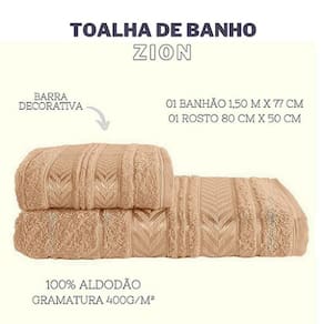 Composto por uma toalha de banho e uma toalha de rosto, o Jogo de Toalhas Zion Amendoa possui medidas aproximadas de 1,50m x 77cm para a toalha de banho e 50cm x 80cm para a toalha de rosto. Ambas as toalhas têm gramatura de 400 g/m2.