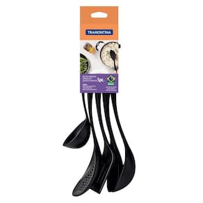 Com o Jogo de Utensílios Tramontina Preto em Nylon 5 Peças a sua cozinha ficará ainda mais vibrante, divertida e diversificada. A linha Utilità projetou utensílios pensados para o dia a dia de um chef, tornando-o mais prático, garantindo que suas receitas possam ser executadas com maestria, utensílios que não podem faltar em uma cozinha, levando praticidade e qualidade para quem ama cozinhar. Com ele, você tem uma variedade de itens para preparar e servir os melhores pratos de forma prática e versátil.