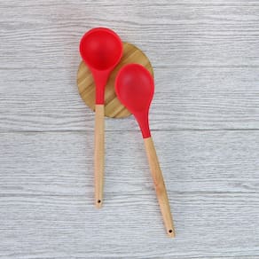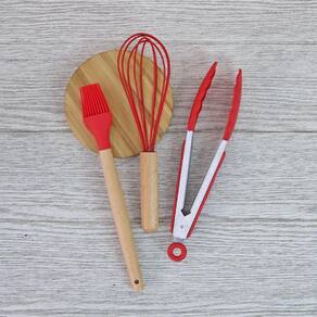 Contém: 01 Suporte, 01 Batedor de Ovos, 01 Pincel, 01 Concha, 01 Espátula, 01 Espátula vazada, 01 Espátula redonda, 01 Espátula pão duro, 01 Colher, 01 Colher vazada, 01 Pegador de macarrão e 01 Pegador.