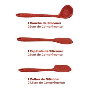Kit de Utensílios de Cozinha Silicone Vermelho Marble 3 peças - Brinox
