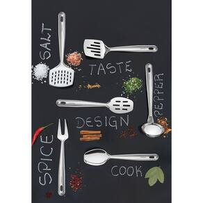 Sua cozinha vai ganhar um toque de estilo com o Jogo de Utensílios Tramontina em Aço Inox 4 Peças da Linha Extrata. Produzidos com o sofisticado aço inox, possuem furo no cabo, transformando-os na escolha perfeita para decorar o ambiente mais gostoso da casa. O material altamente durável, garante resistência as 4 peças do conjunto. São de fácil higienização, podendo ser lavados diariamente na máquina de lavar louças.