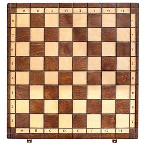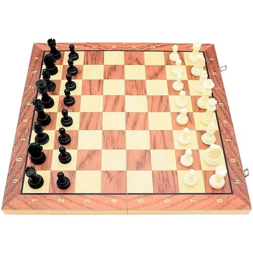 Tabuleiro em madeira 24 x 24 cm, 16 peças claras e 16 escuras de Madeira com feltro na base. Tabuleiro dobrável ótimo acabamento