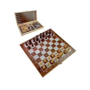 Jogo de Xadrez Dama Gamão Dobrável Tabuleiro em Madeira 29cm