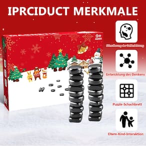 Como brincar. 1. Coloque a corda de jogo plana em uma mesa ou superfície horizontal e divida as peças magnéticas uniformemente entre os jogadores. 2. Cada jogador coloca 1 peça de xadrez magnética dentro da corda do jogo por sua vez. Se 2 ou mais peças forem sugadas juntas quando um jogador coloca uma peça, esse jogador tem que tirar todas as peças que são sugadas juntas. 3. Quando um jogador coloca todas as peças em sua mão dentro da corda do jogo sem ser pego por nenhum ímã, esse jogador ganhou os jogos. - ? Novo jogo de xadrez magnético de Natal 2024?O jogo de xadrez magnético com pedras é um divertido jogo de estratégia de quebra-cabeça que promove a diversão e exercita o pensamento lógico do seu filho. Coloque todas as peças magnéticas em sua mão no círculo da corda, nenhuma peça magnética é sugada junta, você ganha! - ?Jogo de xadrez de quebra-cabeça?Você precisará de um olho afiado, habilidades de pensamento rápido, fortes habilidades de observação e mãos rápidas. O jogo de xadrez magnético não dura mais de dois ou três minutos e todos têm uma chance bastante igual de ganhar. Este jogo de mesa é perfeito para melhorar as habilidades de pensamento lógico das crianças! - ?Melhoria da capacidade cognitiva?O jogo de xadrez magnético não é apenas divertido de jogar, mas também tem vários benefícios educacionais. Os jogadores podem melhorar o pensamento crítico, a resolução de problemas e as habilidades de planejamento estratégico enquanto competem de maneira amigável. Além disso, o jogo promove a interação social e o trabalho em equipe entre os jogadores. Promove o desenvolvimento do cérebro das crianças e a melhoria da capacidade cognitiva através do jogo estratégico de xadrez. - ?Versátil e portátil?Se você estiver em casa, viajando em família ou em um parque para um piquenique, festa ou reunião de família, o jogo de xadrez magnético é fácil de carregar e montar. Divirta-se onde quer que você vá e certifique-se de passar tempo de qualidade com seus entes queridos quando e onde quiser. - Conjunto de jogo de xadrez magnético: 20 pedras magnéticas, 1 corda de jogo, 1 bolsa de Natal, 1 manual de instruções do jogo.