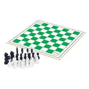 Jogo De Xadrez Na Sacola Junges.Jogo tradicional de xadrez com tabuleiro em madeira de MDF.Acompanha kit de peças plásticas para xadrez e regras do jogo.Tamanho do rei: 5,6 cm.Embalagem: sacola PVC com alça.Idade recomendada: A cima de 7 anos.Tamanho do tabuleiro: 28,5x28,5 cm.
