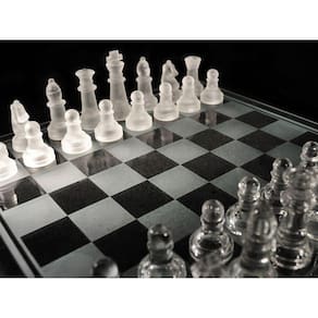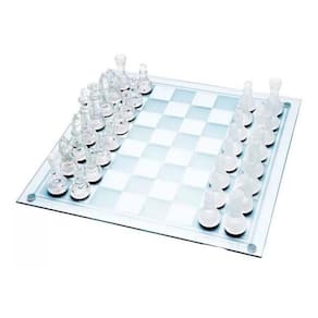 Lindo jogo de xadrez com base e peças em vidro, ideal para decoração de ambientes descontraídos ou para dar de presente para pessoas que gostam desse maravilhoso jogo de estratégia. Fixa Técnica Material: Vidro Medida Do Tabuleiro: 25cm x 25cm x 3mm Tamanho das peças: Peão 3cm / Rei 6cm. As demais peças seguem as proporções padrão em relação ao a altura do Rei. Peso: 800g As peças acompanham pezinho para não riscar o tabuleiro. Itens Incluso: 1 tabuleiro e 32 peças, sendo 16 de vidro transparente e 16 de vidro jateado.