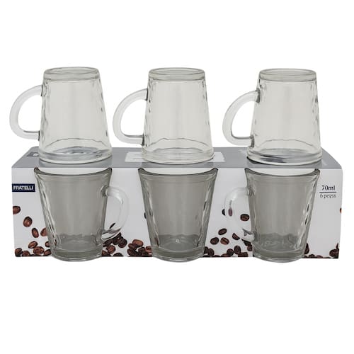 Kit 6 Xícaras de Vidro Fratelli 70ml – Café Expresso