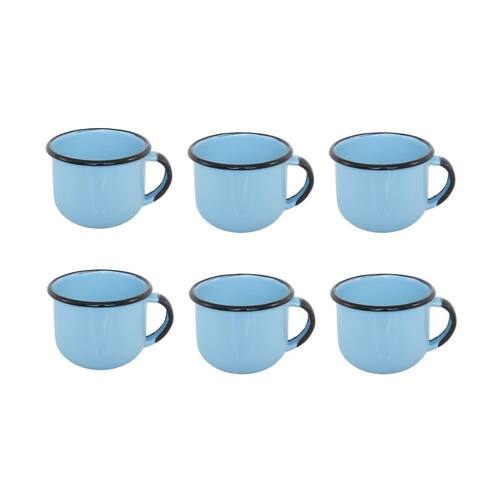 Jogo de Xícara de Cafezinho 06 Peças Esmaltada Azul Claro 120 ml Ewel