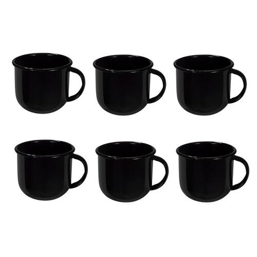 Jogo de Xícara de Chá 06 Peças Esmaltada Preta 240 ml Ewel