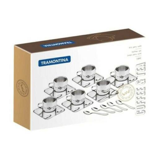 Ideal para todas as ocasiões e ambientes, o kit para café tramontina em aço inox acabamento brilho com xícara pires quadrado e colher 18 peças da linha chá e café tornará o momento do cafezinho mais saboroso, prático e elegante. Com peças produzidas em aço inox altamente durável, não solta nenhum resíduo nas bebidas, mantendo-as próprias para o consumo. Perfeitas para o uso diário, as as xícaras possuem paredes duplas, evitando que o calor da bebida passe para a parte externa, garantindo um manuseio confortável e seguro. O acabamento em brilho garante a beleza na hora de servir. Praticidade e versatilidade que tornarão a sua rotina ainda mais prazerosa. Conteúdo do jogo: