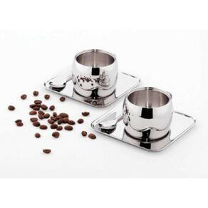 totalmente feitas de aço inox, por isso não soltam nenhum resíduo nos alimentos, mantendo-os saudáveis. Altamente duráveis, mantêm as características , preservando a beleza, a higiene e a durabilidade do material. Acabamento em brilho. Próprias para o uso diário, combinam com qualquer ambiente. Versatilidade e beleza na hora de servir. As xícaras possuem paredes duplas, o calor da bebida não passa para a parte externa. Os pires tem formato quadrado e possuem rebaixes para colocação da xícara e da colher para café. Podem ser lavadas, diariamente, na máquina de lavar louças. Ean13: 7891116000335 dun14: 17891116000332 ncm: 7323. 93. 00 peso líquido: 1,1700 kg. Peso bruto: 1,4900 kg. Metragem: 0,051624 m. Dimensões embalagem compr. X larg. X alt. : 400x 270x 478 mm. Diâmetro: 6,0 cm. Capacidade: 0,08 l.