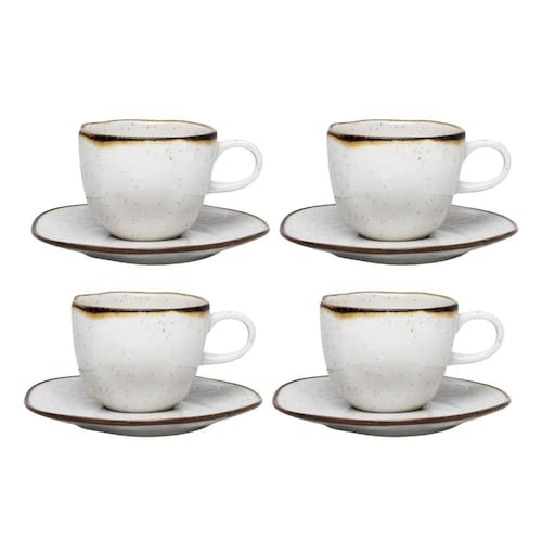 Itens Inclusos: 04 Xícaras de Chá - 220ml; 04 Pires de Chá - 16cm.