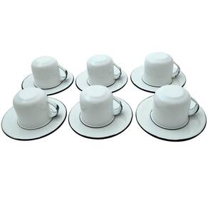 Pequenos cuidados com seu lar fazem toda a diferença. #Qualidade e Delicadeza #Elegância na sua Mesa #Conjunto Esmaltado Garantia: 90 dias / Peso: 660g / Cor: Azul Claro, Rosa, Amarelo, Azul ou Vermelho / Ref: 35CANECASPIRESX6 Medidas: 12cm (C) x 6,5cm (A) Cuidados: Não lavar com materiais abrasivos. Capacidade da Xícara: 150ml Material: - Aço Esmaltado. Este conjunto de xícara e pires é perfeito para compor o café da manhã, chá da tarde e jantar. Você serve seus convidados, clientes, amigos, familiares com bom gosto e compõe sua mesa com muita sofisticação. Composto por seis xícaras e seis pires, possui borda trabalhada em alto relevo. Ele complementará a decoração de sua cozinha trazendo um toque especial ao ambiente, equilibrando as formas simples com design tradicional.