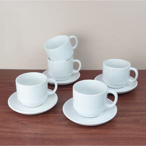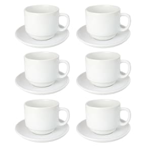 Aprecie seus momentos de café ou chá com elegância e conforto usando este jogo de xícaras com pires de cerâmica, composto por 12 peças — sendo 6 xícaras e 6 pires. Cada xícara possui capacidade de 210 ml, ideal para café com leite, cappuccino, chás e outras bebidas quentes.