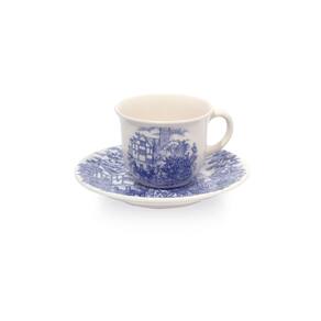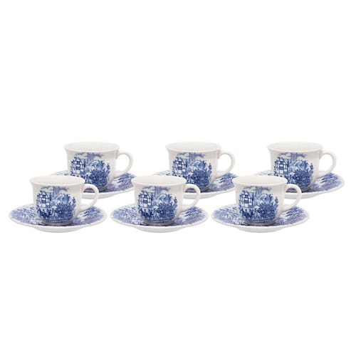 Jogo de Chá, com 6 peças, Linha Biona Cena Inglesa Oxford, peças produzidas em cerâmica, apresenta estampa em tons azul, com uma decoração que remete à paisagens do passado.