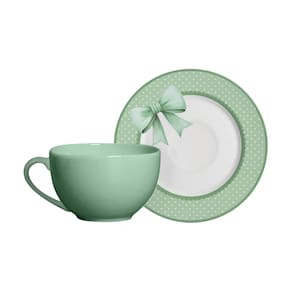 O Jogo de Xícaras de Chá Laços de Páscoa Verde , da Alleanza combina sofisticação e delicadeza para compor sua mesa posta. Produzido em cerâmica feldspática, o conjunto de chá é composto por 12 peças, 6 xícaras de 250 ml e 6 pires, que podem ser levados ao micro-ondas e à máquina de lavar louças.