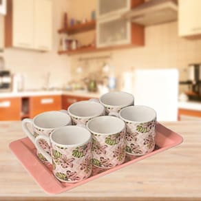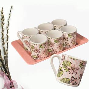 Conjunto Xícaras Coloridas e Bandeja Com esse lindo conjunto de xícaras e bandeja a hora de atender as visitas se tornará muito mais sofisticada Peças de qualidade e com lindos desenhos diferenciados. Opção ideal para recepções, restaurantes, lanchonetes, etc... Ou para receber seus convidados em casa e deixar seus momentos mais especiais e aconchegantes.