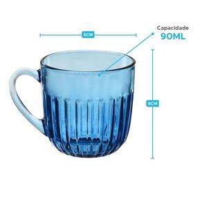 - Capacidade de 90ml, perfeitas para servir café expresso. - Dimensões: 6 x 6cm diâmetro x altura . - Xícaras de café de vidro de alta qualidade. - Relevo externo canelado. - Design elegante e moderno.