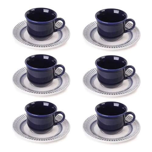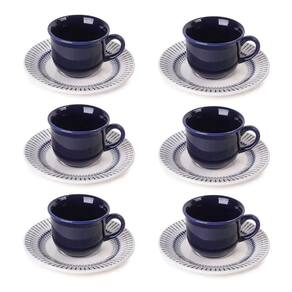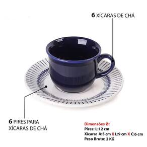 Produzido em cerâmica, este aparelho pode ir ao micro-ondas e à máquina de lavar louça. São lindas peças para valorizar momentos com amigos e familiares. A estampa é floral e a cor azul cobalto. Aparelho formado por 6 xícaras e 6 pires. É ideal para manter a mesa sempre elegante e bem decorada.