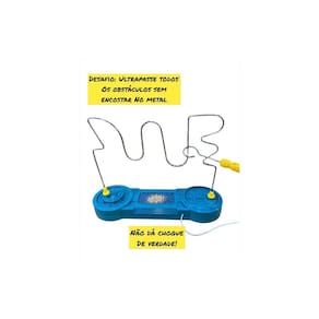 Brinquedo desafio do choque, um jogo educativo que estimula a precisão, coordenação motora e concentração. Ao tocar no metal, o brinquedo emite um aviso sonoro, indicando que o jogador deve começar novamente. O objetivo é completar todo o circuito sem acionar o sinal sonoro.