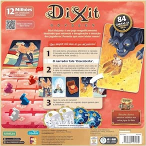 Embarque em uma aventura ainda maior com Dixit Odyssey, para até 12 participantes. Dixit Odyssey é um jogo magnificamente ilustrado que estimula a imaginação e intuição dos jogadores. Permita que suas ideias voem Um dos jogos mais jogados no Brasil e no mundo Desperte sua criatividade enquanto descobre mais sobre você e seus amigos neste incrível jogo de dedução, para até 12 jogadores. Fabricante: Galapagos Ref.: DIX111 Código Barras: 3558380127079 Idade recomendada: Acima de 8 Anos Dimensões da Embalagem AxLxC : 27X27X6cm Número de Jogadores: 3-12 Duração: 30 minutos do Vendedor: 7 dias do Fabricante: 3 meses Homologação Inmetro: CE-BRI/IDEAL 00149/22-01