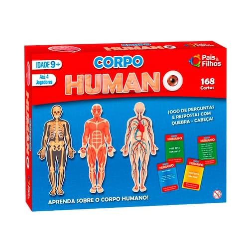 Chegou a hora de testar e aprimorar e treinar a criançada Um super jogo que estimula o aprendizado das crianças. Jogo de perguntas e respostas com quebra-cabeça. Um ótimo jogo para aprender sobre o corpo humano. Um jogo educativo e muito divertido sobre o corpo humano, através de perguntas e respostas. Acerte uma pergunta e ganhe uma pela do quebra-cabeça. Quem montar primeiro é o grande vencedor 120 peças. Garanta já o seu