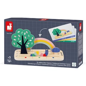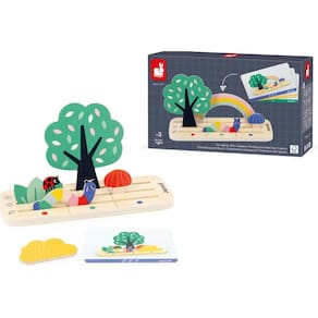 O que você vê no jardim Acompanhe seu filho a um mundo primaveril por meio de uma atividade individual ou em dupla. Este jogo permitirá que seu filho aprenda a se orientar no espaço e a desenvolver seu vocabulário. É composto por um tabuleiro, 8 figuras de madeira e 24 modelos para reproduzir. O objetivo da atividade é colocar no quadro os elementos que representem as cenas indicadas nas cartas. Os diferentes níveis das cartas permitirão que o seu filho evolua com o jogo, sozinho ou acompanhado. Jogo de madeira e papelão FSCTM. Jogo educativo desenvolvido em colaboração com uma professora para crianças a partir dos 3 anos.