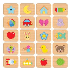 Contém: 20 peças em madeira, 1 saco em tecido e 01 manual de instrução.