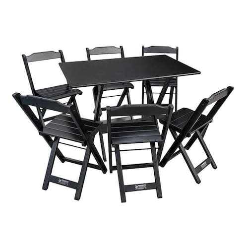 Jogo Dobrável 70x110cm Com 6 Cadeiras Preta Cor: Preto