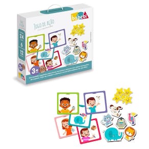 Jogos de ação e desafios, envolvem situações em que as crianças precisam tomar decisões rápidas, planejar estratégias e antecipar consequências. Essas atividades estimulam o pensamento crítico e a resolução de problemas.Este jogo de ação é formado por fichas de desafios contendo atividades como lançar, empilhar, equilibrar, mirar e girar, figuras de animais fofos para executar cada atividade, além das figuras de estrelas usadas como recompensa por cada desafio concluído.Indicado para crianças a partir de 3 anos, este produto produzido com madeira reflorestada do tipo MDF de alta qualidade utilizando energia solar limpa e sustentável ainda acompanha uma bolsinha de pano para guardar as peças e facilitar o transporte.Conteúdo da Embalagem: 24 cartas, 6 personagens, 12 estrelas, 1 bolsinha e 1 manual de instruções.Certificado de Segurança: INMETRO - Registro 009271 / 2022Homologação Inmetro: ABCP-BRI-0272-2022-01