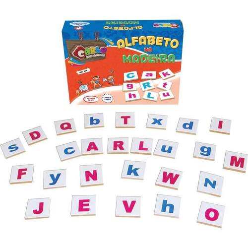 Objetivo:auxiliar na identificação das letras e formação de palavras Introduzir jogos no desenvolvimento da linguagem escrita, é a forma mais divertida de aprender. Confeccionado em M.D.F. 26 peças, letras medindo 4 x 4 cm, com serigrafia ultravioleta atóxica em ambos os lados. Embalagem: Caixa de papel microondulado ilustrado medindo 24 x 18 x 4,5 cm. Código: 3016 Idade: A partir de 3 anos Material: M.D.F. Inmetro CE-BRI/IQB-6039 NM 300/2002 Ean: 7898237855462