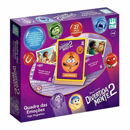 Com o Quadro Magnético das Emoções Divertidamente 2 da Nig Brinquedos, as crianças a partir de 4 anos podem aprender sobre suas emoções de maneira interativa e educativa. O produto possui dimensões de 32x25x6 cm e é fabricado com materiais de alta qualidade, como MDF e papel cartonado. Contém 27 peças magnéticas coloridas que representam diferentes emoções, estimulando o desenvolvimento emocional e cognitivo dos pequenos.
