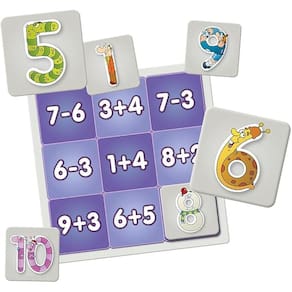 6 + 2, 11 - 5, 10 - 3... Qual dessas contas dá 7 como resultado? Jogando, a criança descobrirá que aprender matemática pode ser uma brincadeira superdivertida!
