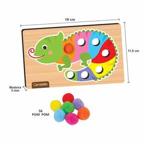 Jogo Educativo - Madeira - Crescer - Pega Pompom - Nig Brinquedos: a Linha Crescer tem como objetivo promover a aprendizagem e o desenvolvimento das crianças por meio de experiências lúdicas, interativas e construtivas. As crianças amam os pompons, coloridos e macios para brincar! Essa atividade vai desenvolver a coordenação motora fina, facilitando a prática de tarefas como a escrita e outras que necessitem de firmeza e direção dos movimentos. Preenchendo as ilustrações a criança terá noção de diferenciação das cores, nomeações, percepção de ordem, além de trabalhar sua concentração. Como brincar? • Pegue as bolinhas com a pinça e coloque nos espaços com a mesma cor! Detalhes: • Atividade Montessori • 06 placas e 01 pinça • 56 pompons coloridos • Figuras em madeira • Ilustrações de animais: Camaleão, Porco-espinho, Borboleta, Polvo, Peixe e Pavão Informações: • Produto: Jogo Pega Pompom Montessori • Marca: NIG Brinquedos • Coleção: Crescer • Tipo: Jogos Educativo Infantil • Categoria: Jogos Educativos • Tamanho: 19 x 11.5 x 03 cm (placas) • Conteúdo: - 01 pinça plástica - 06 placas de madeira - 56 pompons • Recomendação: para crianças a partir de 04 anos de idade Especificações: • Referência: 0461 • Código de Barras: 7896200704618 • Embalagem (C x A x L): 25 x 20 x 06 cm • Embalagem (Peso): 0.401 kg • Material / Composição: - Madeira MDF - Polipropileno - Bolinhas em Poliéster • Registro: 006159/2021 • Certificado: Órgãos Autorizados - OCP´S (Organismos de Certificação de Produtos) Aviso: • As imagens são meramente ilustrativas • Os pesos, tamanhos e medidas são aproximados • As cores e estampas dos produtos podem ter variações • As informações são de responsabilidade do fabricante ou fornecedor