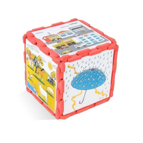 Composto por 6 peças de 16 x 16 cm que se encaixam entre si formando um cubo.