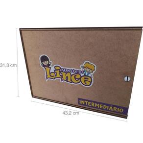 O jogo educativo lince Intermediário é uma versão desafiadora, projetada para jogadores que desejam elevar o nível de complexidade e competitividade. Além de possuir regras intermediárias, o objetivo do jogo pedagógico é o jogador que achar as palavras no tabuleiro mais rápido receberá mais pontos e vencerá no final. Feito em madeira MDF, pode ser jogado de duas a seis pessoas.