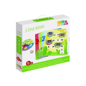 Feito de madeira reflorestada. Contém 4 tabuleiros que medem 26 x 19 cm e 4 peões A Dona Aranha, 1 roleta e 1 dado. Indicado para crianças a partir de 3 anos. Recomenda-se a interação de um adulto. Não recomendado para crianças menores de 3 anos por conter partes pequenas. Colocar na boca pode danificar o produto. Utilizamos materiais seguros, duráveis e ecológicos.