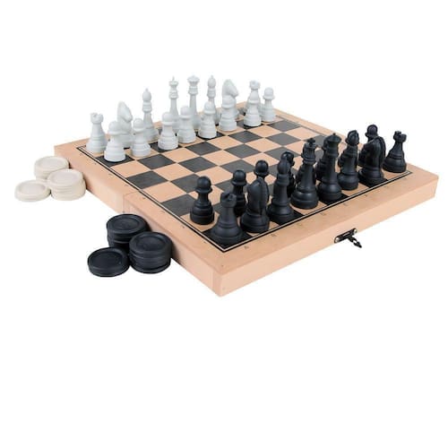 Jogo Educativo Xadrez e Damas Colegial 56 peças. A partir de 3 anos Enviamos pra qualquer região do Brasil. Os dois jogos auxiliam no desenvolvimento do raciocínio lógico, incentivando habilidades de observação, reflexão, análise e tomadas de decisão. Descritivo detalhado: Confeccionado em M.D.F. Estojo/tabuleiro com fecho metálico serigrafado com quadrantes claros e escuros, com 32 peças de plástico para o xadrez Rei 5 cm de altura e 24 peçasde M.D.F. Para as damas, totalizando 56 peças. Estojo aberto mede: 24 x 24 x 2 cm. Embalagem: Estojo fechado mede: 24 x 12 x 4 cm. Lacrado com película de P.V.C. Encolhível. Idade Recomendada: A partir de 3 anosINMETRO:CE-BRI/ICEPEX-N 00928-96NBR NM 300/2004