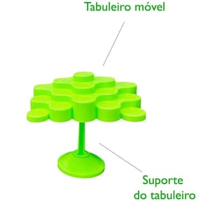 Conteúdo da Embalagem: 48 Peças coloridas, 1 Tabuleiro móvel, 1 Suporte do tabuleiro e 1 dado