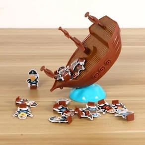 O Navio Pirata consiste em um pêndulo que basta um posicionamento desbalanceado para perder o jogo e recomeçar novamente! Um desafio que estimula coordenação motora, concentração, trabalho em equipe e brincadeira em família.