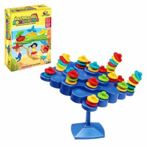 Jogo Equilibrando Discos - Equilibrando Chapeus - Arvore de Sombrero Equilibrando Chapéus é um emocionante jogo de mesa que desafia crianças e adultos a colocarem suas habilidades de raciocínio e destreza à prova. Os jogadores lançam o dado e devem equilibrar um chapéu na casa correspondente ao número tirado. Se cair no número 6, o jogador tem a vantagem de escolher qualquer outra casa para colocar seu chapéu. O objetivo é ser o primeiro a equilibrar todos os seus chapéus na árvore sem derrubá-la. Porém, se a árvore cair durante sua vez, você terá que ficar com todos os chapéus caídos, aumentando o desafio. Cada chapéu adicionado torna a pilha mais instável, exigindo que os jogadores avaliem cuidadosamente a estabilidade antes de fazerem suas jogadas. Este jogo não apenas proporciona diversão, mas também desenvolve habilidades motoras finas e estratégicas. Com regras simples e desafios crescentes, Equilibrando Chapéus é perfeito para noites de jogo em família, garantindo risos e diversão enquanto todos tentam manter seus chapéus em equilíbrio. Vença ao ser o primeiro a equilibrar todos os seus chapéus e prove sua habilidade de tomar decisões calculadas! Indicado para crianças a partir de 5 anos. Para 2 ou mais jogadores. Medidas: 11cm x 14cm (A x L) LEMBRETE: “Ler atentamente o manual (quando o brinquedo possuir) e as instruções na caixa”. IMPORTANTE: Os objetos que decoram as fotos não acompanham o produto. Fique atento, as cores das imagens podem sofrer alterações em relação às cores do produto, dependendo da resolução da tela em que serão visualizadas.