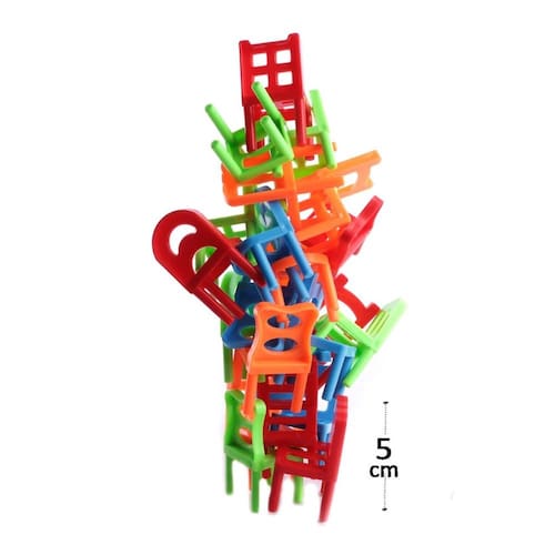 Jogo Equilibrar Cadeiras 24 Peças Jogo Equilibrar Cadeiras 24 Peças - Divertido jogo para toda família ou até para jogar sozinho! - Objetivo é empilhar as cadeiras, equilibrando-as para que não caiam, perde quem deixar cair primeiro;\n- As cadeiras têm formas diferentes, para que você use sua habilidade e estratégia - Incentiva o raciocínio, o equilíbrio e a coordenação motora;\nEspecificações:\nMarca : ARK\nTipo de material : Plástico\nCores ou Estampa : Colors\nDimensões do Produto : 23,5 X 15 X 4,5 CM\nDimensões da Embalagem : 13,5 X 15 X 4,5 CM\nPeso Bruto (Gramas) : 0.150 Marca: Não Informado
