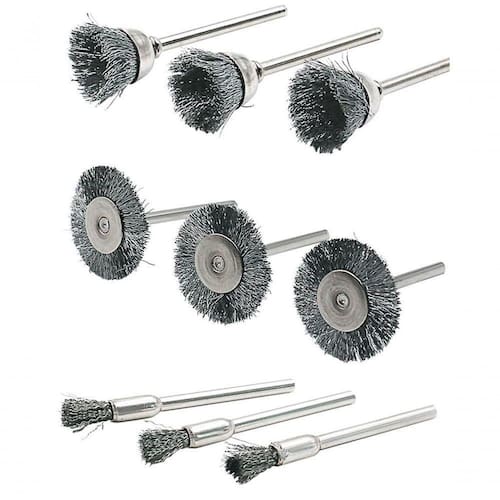 KIT COM 09 ESCOVAS DE AÇO INOX, PARA MICRO RETÍFICA TIPO DREMEL, BOSCH E SIMILARES DAS MELHORES MARCAS DO MERCADO.