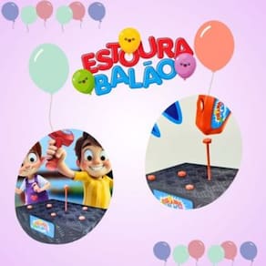 A diversão está garantida com o brinquedo Estoura Balão! Um jogo de desafio e emoção para as crianças! Para 2 a 4 jogadores, a partir de 5 anos, esse jogo é perfeito para animar qualquer momento em família ou com os amigos. Com regras simples e muita expectativa a cada rodada, o Estoura Balão desenvolve a coordenação motora, o raciocínio rápido e a socialização das crianças de forma alegre e interativa. Para jogar, basta encher um balão por participante e colocá-los dentro da caixa do jogo. O jogador gira a roleta e segue a instrução, inserindo cuidadosamente os pinos. Depois, passa o martelinho, a roleta e a vez para o próximo. A cada rodada, a tensão cresce! Quem conseguir estourar mais balões com menos pinos, vence a partida! O Estoura Balão é um brinquedo cheio de ação e gargalhadas, ideal para festas, brincadeiras em grupo e como entretenimento para as crianças. Indicado para crianças a partir de 5 anos (conforme fabricante). Conteúdo da embalagem: 1 caixa para os balões, 1 martelo, 1 inflador manual de balões, 100 balões infláveis, 30 pinos, 1 roleta, 1 cartela de adesivos. Medidas da caixa: 24,5cm x 20cm x 11cm (CxLxA) Medida do martelo: 9cm x 16cm (LxA) Composição: Plástico Qualquer dúvida, entrar em contato conosco através dos canais de atendimento. IMPORTANTE: Fique atento, as cores das imagens podem sofrer alterações em relação às cores do produto, dependendo da resolução da tela em que serão visualizadas.