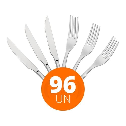 OBS: Veja na descrição os itens que acompanham o jogo.COMPONENTES DO KIT:48 Faca para Churrasco Laguna em Aço Inox - Tramontina 6390618048 Garfo de Mesa Laguna em Aço Inox - Tramontina 63906020Faca para Churrasco Laguna em Aço Inox - Tramontina 63906180Garantia: 90 dias para vícios ou defeitos de fabricação- Ideal para Restaurante, Lancheria, Padaria, Linha Doméstica, Residência, Gourmet;- Acabamento em brilho, com detalhes no cabo.- Própria para uso diário combina com qualquer ambiente.- Pode ser lavada diariamente na máquina de lavar louças.- Peso Líquido: 0,043 kg.- Peso Bruto: 0,045 kg.- Dimensões Embalagem : 0,8cm A x 2cm L x 23cm P- Dimensões Produto : 0,3cm A x 1,8cm L x 21cm P- Espessura: 3,0 mm.Garfo de Mesa Laguna em Aço Inox - Tramontina 63906020Garantia: 90 dias para vícios ou defeitos de fabricação- Ideal para Restaurante, Lancheria, Padaria, Linha Doméstica, Residência, Gourmet;- Próprio para uso diário combina com qualquer ambiente.- Pode ser lavado diariamente na máquina de lavar louças.- Peso Líquido: 0,032 kg.- Peso Bruto: 0,035 kg.- Dimensões Embalagem: 2cm A X 2,5cm L X 20cm P.- Dimensões Produto : 1,9cm A X 2,3cm L X 19,3cm P.- Espessura: 1,6 mm.