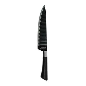 Jogo de Facas 6 Peças Aço Inox Cozinha - Tesoura Knife Set PretoTransforme a sua experiência na cozinha com o Jogo de Facas 6 Peças Aço Inox Cozinha - Tesoura Knife Set Preto! Este conjunto premium oferece não apenas beleza estética, mas também desempenho excepcional para tornar suas atividades culinárias mais eficientes e seguras.Descrição:Desenvolvido com seis peças de revestimento antiaderente, cada lâmina afiada possui um design de ângulo que, combinado com cabos ergonômicos, proporciona precisão e segurança incomparáveis. As peças são feitas de aço inox durável e de alta qualidade, selecionadas para usos específicos, tornando este conjunto ideal para todas as suas necessidades diárias na cozinha.Especificações:Dimensões aproximadas: (C) 21cm x (L) 36cm x (A) 3cm (Produto com Embalagem)Peso aproximado: 620gComposição: Aço Inox e PlásticoCor: PretoItens inclusos:1 Cutelo - 30 cm (Com o Cabo)1 Faca para Fatiar – 33 cm (Com o Cabo)1 Faca para Chef – 32,5 cm (Com o Cabo)1 Faca de Aparar – 20 cm (Com o Cabo)1 Tesoura de Cozinha – 13 cm (Com o Cabo)1 Descascador de Legumes – 14 cm (Com o Cabo)Recomendações e Cuidados:Mantenha suas facas sempre afiadas e secas, evitando o uso de produtos abrasivos. São resistentes ao uso em máquina de lavar, mas é aconselhável a lavagem manual com detergente neutro. Mantenha fora do alcance das crianças devido à natureza cortante e perfurante do produto.Garantia e Devolução:Sua satisfação é nossa prioridade! Oferecemos uma garantia especial de 3 meses. Além disso, entendemos que você precisa de tempo para se apaixonar pelo nosso Jogo de Facas, por isso, concedemos 7 dias para testar o produto sem custo adicional. Se não estiver 100% satisfeito, aceitamos o produto de volta. Estamos comprometidos em proporcionar a melhor experiência culinária, sem riscos para você. Invista na qualidade, invista no Tesoura Knife Set Preto! Marca: innovaree-commerce