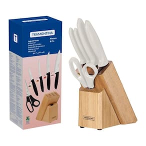 Jogo De Facas Cozinha Cepo Cabo Branco 6 Pçs Plenus Tramontina