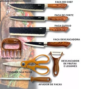 Jogo facas inox 8 peças maleta gourmet Descrição do anúncio Transforme seu churrasco em uma experiência gourmet com este kit de facas ideal para os verdadeiros amantes da carne e da boa culinária, o conjunto conta com lâminas afiadas em aço inoxidável, design moderno e acabamento elegante. Seja para uso doméstico ou , este kit é perfeito para churrasqueiros exigentes que buscam precisão e estilo na hora do corte. Além de garantir cortes perfeitos, o kit acompanha acessórios essenciais como cutelo, afiador e amolador, proporcionando maior praticidade e durabilidade para suas facas. Um excelente presente para o dia dos pais ou qualquer ocasião especial Conteúdo da embalagem 1 faca do chef 1 faca para fatiar 1 faca de desossar 1 faca para legumes 1 cutelo 1 afiador ou amolador manual 1 garra de segurar carne 1 maleta elegante para armazenamento Características Lâminas afiadas e resistentes em aço inoxidável Design ergonômico com cabo confortável Visual sofisticado na cor preta com marrom Ideal para cortar carnes, legumes, verduras e muito mais Uso doméstico ou Fácil de limpar e com alta durabilidade Maleta prática para transporte e organização Presente ideal para datas comemorativas como dia dos pais Especificações Material das lâminas: aço inoxidável Material do cabo: polipropileno resistente Cor: preta com marrom Quantidade de peças: 8 Tipo de produto: kit de facas para churrasco Uso: doméstico e Acompanha maleta: sim Tipo de corte: precisão e alta performance Entrega: rápida Marca: Não Informado